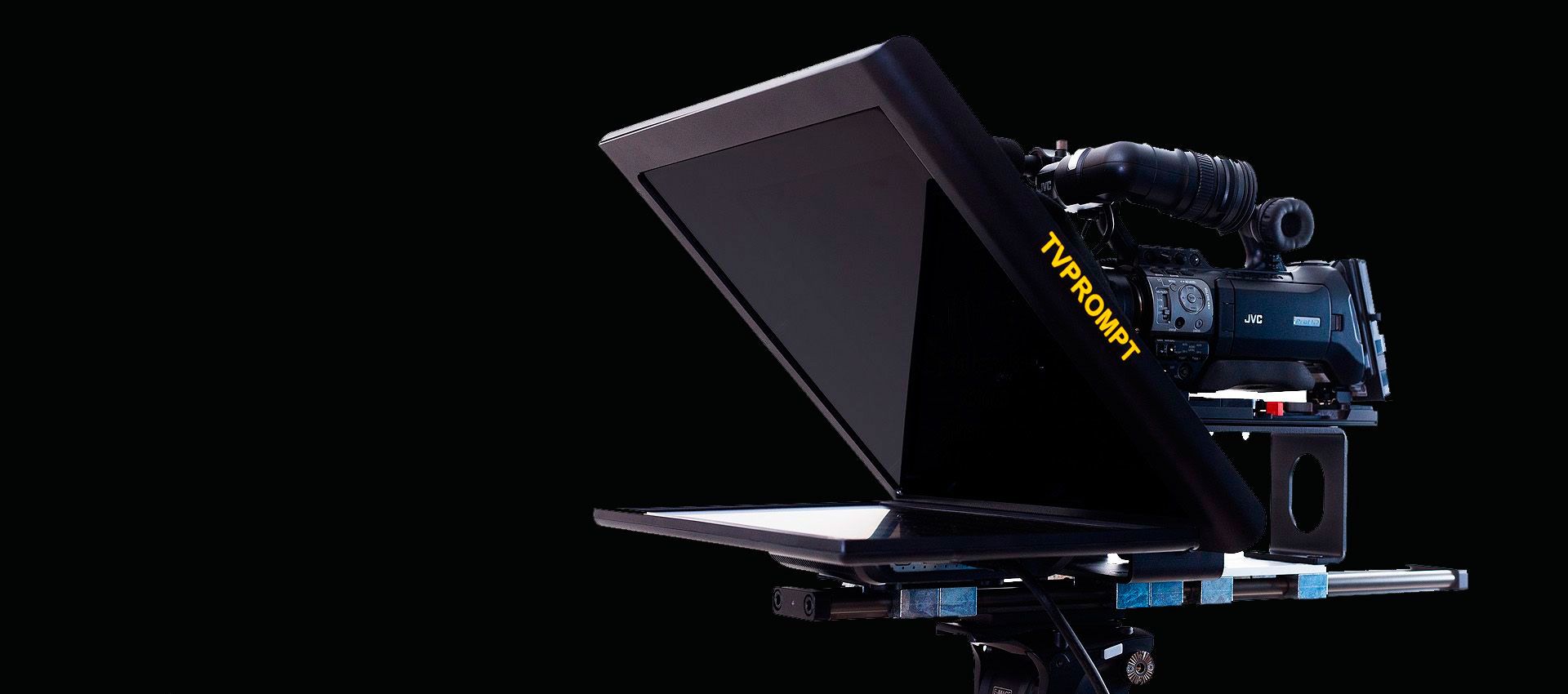 Teleprompter de estudio, diseñado para platós de televisión, con cámara fija y sistema de equilibrio automático con compensación del centro de gravedad.